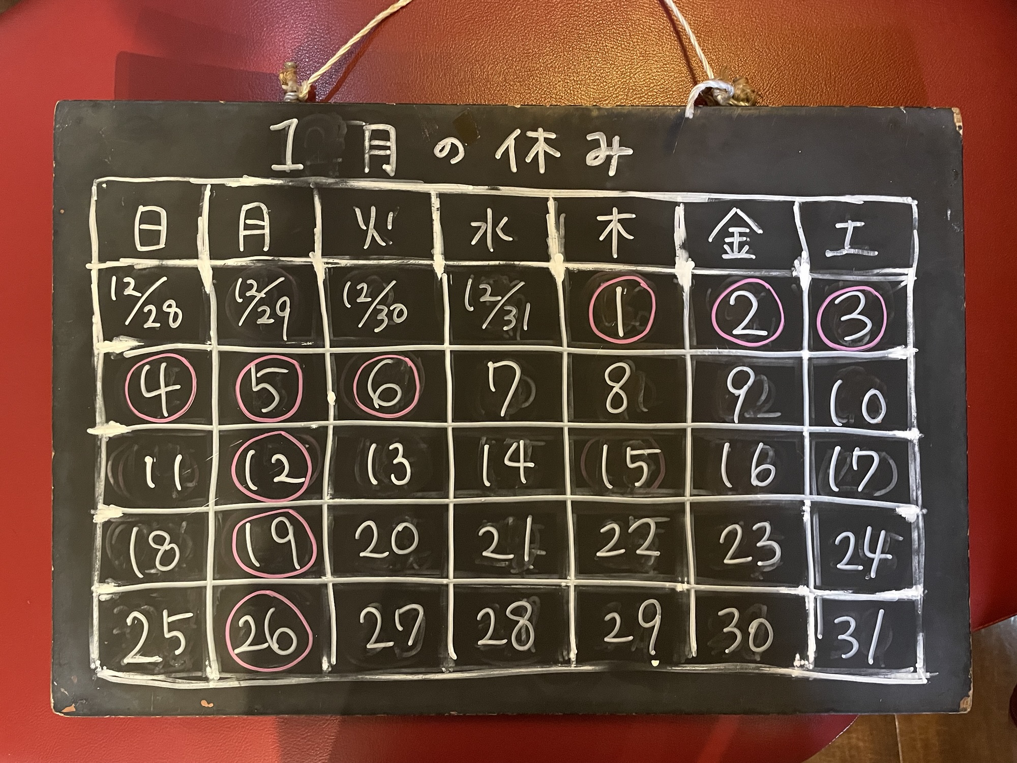 2026年1月の営業は